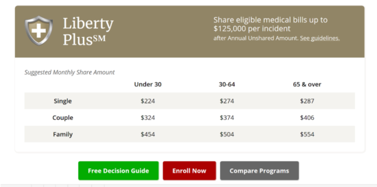 The Liberty Share Plan covers up to 70% of eligible medical costs, up to $125,000 – which tells us this is NOT a cost-effective plan. The slight savings in the monthly share amount doesn’t justify the much greater liability the family is assuming.