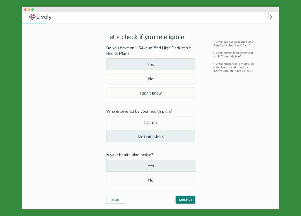 Opening an HSA with Lively is simple and takes less than five minutes. To begin the set-up process, they ask you the necessary information about yourself and your contact information to start the account set-up.