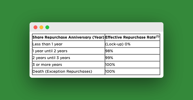 REITs are also illiquid investments, but RealtyMogul does offer a Share Repurchase Program. Through this program, the company can buy shares back from investors. The amount you can expect to receive through this program depends on how long you have held the stock, and you cannot resell in the first year of investment.