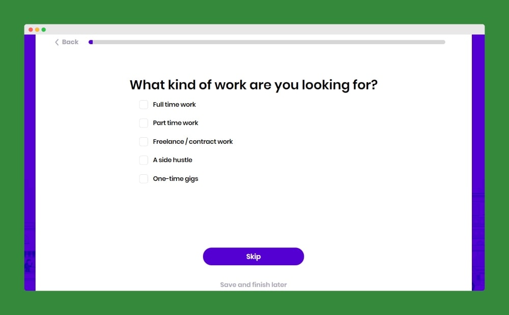 Next, you’ll need to take a short survey which will help the app match you to available opportunities.