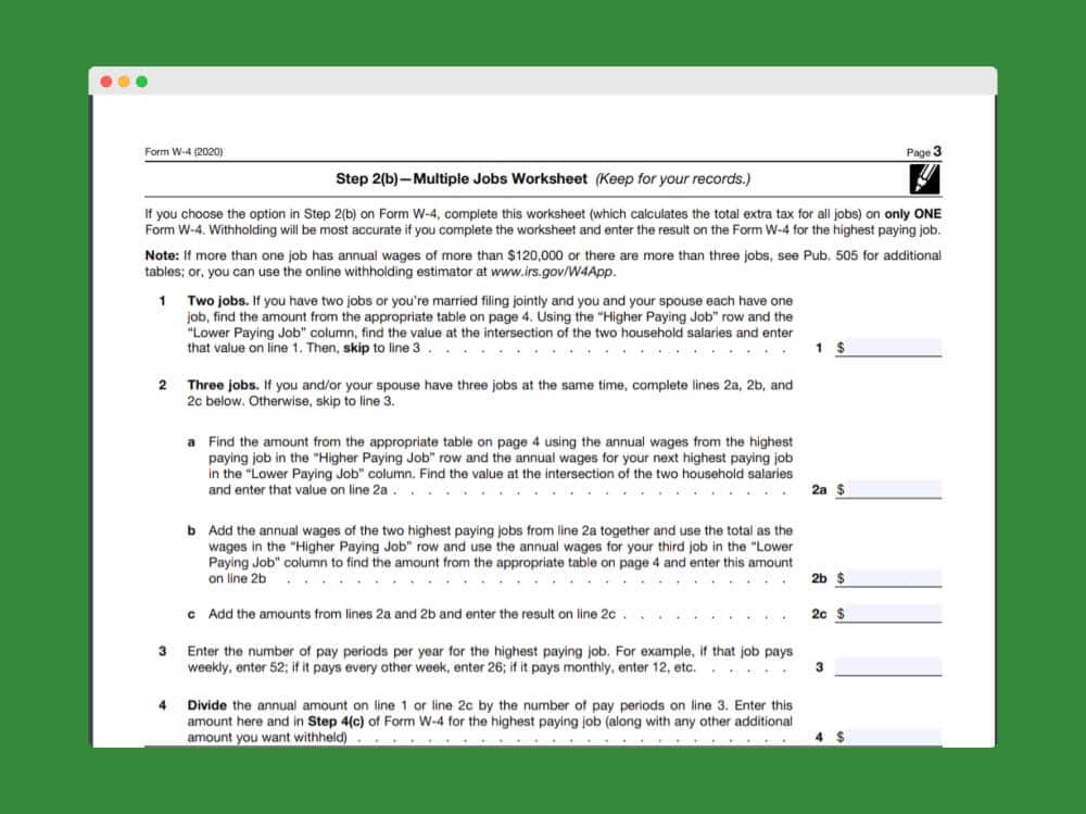 There are two ways to complete this step. One way is to use the new Multiple Jobs Worksheet found on Page 3 of the new W-4 Form.