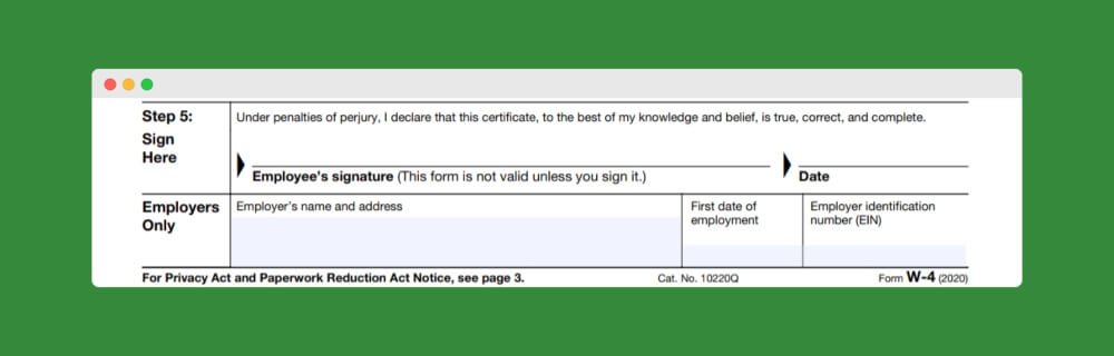 That’s it, you’ve just completed your W-4 Form! The bottom section will be filled out by your employer. That wasn’t too bad, right?